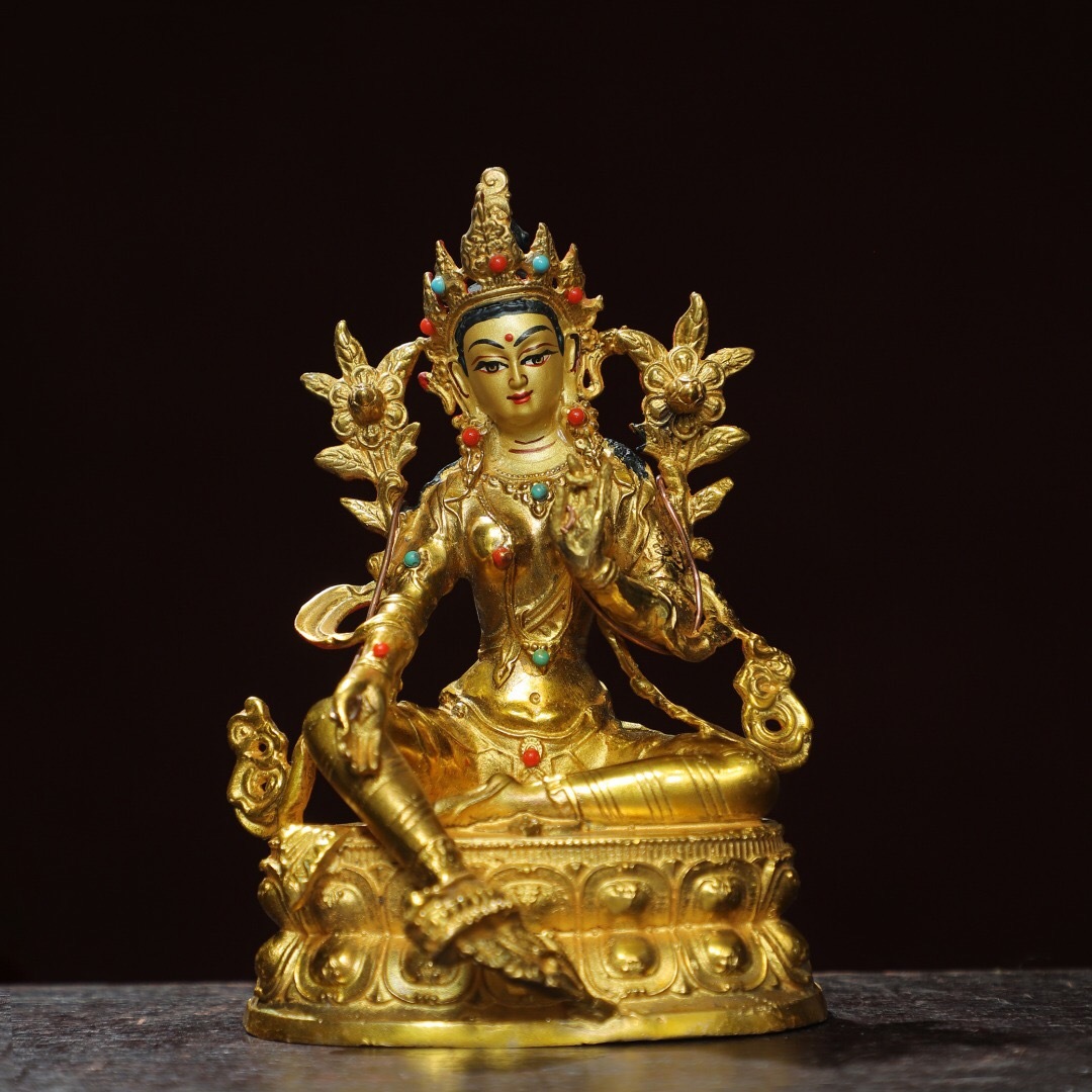 - 【超珍館蔵】銅製 塗金 綠度母像 仏像 宗教 仏教古美術 供養品 古賞物 古董品 古美術品 時代物 旧家蔵出 稀少珍蔵品