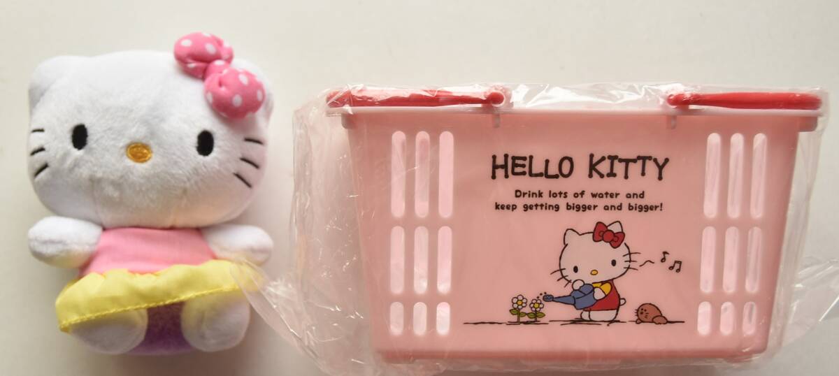 > ハローキティ ぬいぐるみ ミニ買い物かご セット 未使用 約11㎝ キティ キティちゃん