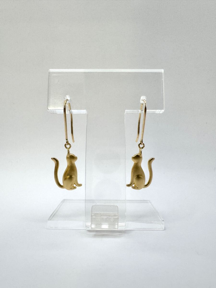 - 【質屋 尾張屋商店 東京】 ☆仕上済☆ K18YG 猫 キャット かわいい レディースピアス 金色