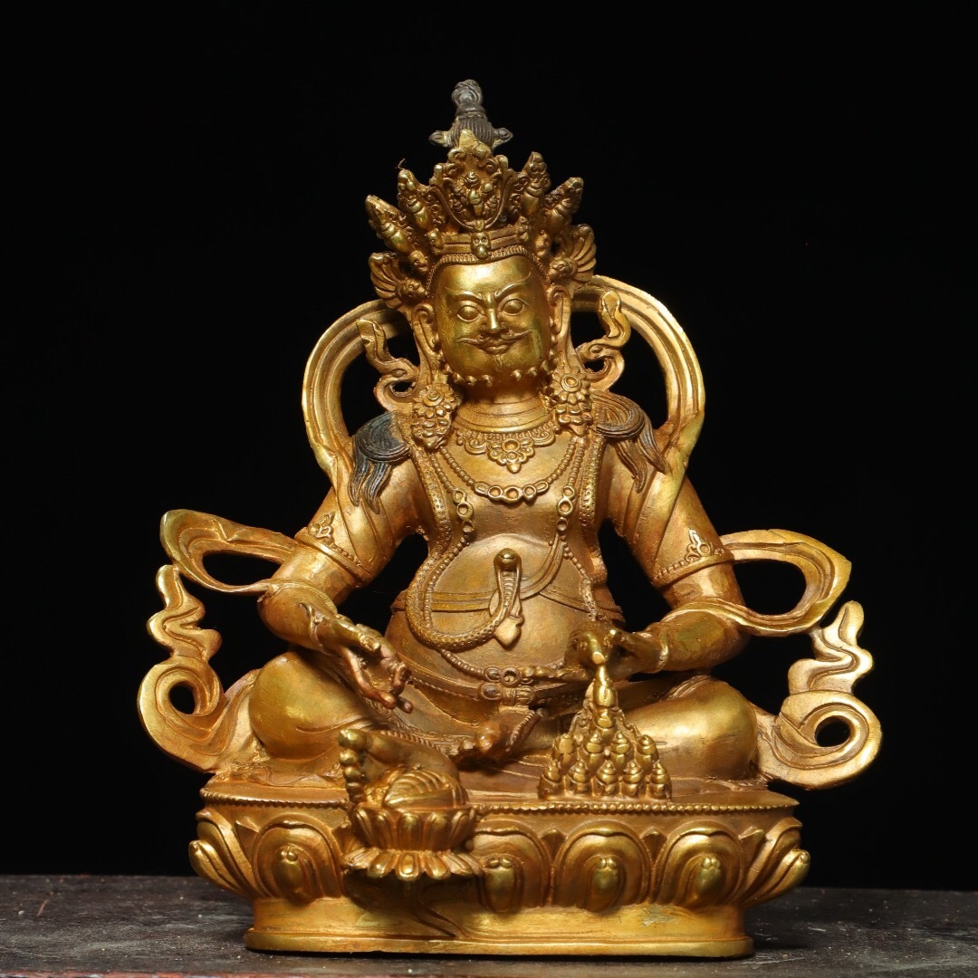 - 『館蔵珍品 銅製 塗金 黄財神像 仏像 宗教 仏教古美術 供養品』稀少珍蔵品 古賞物 貴重物品 収蔵品 中国古美術 時代物 古董品