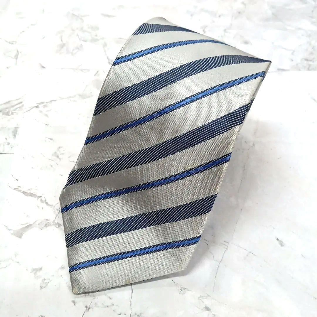 - バーニーズニューヨーク ネクタイ 青 灰色 ストライプ柄 絹【n1903】