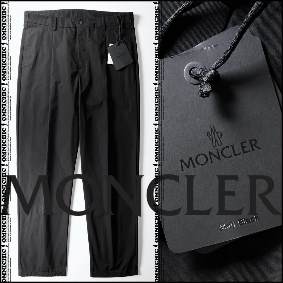 > 人気のMattBlackライン■新品正規22-23AW【MONCLER】モンクレール程よいワイドさブラックマットナイロンロゴワンタックパンツ52/W90~96㎝