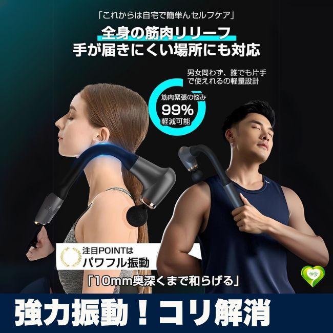> 【強力振動!コリ解消】マッサージガン 筋膜リリース 6段階調整 ハンディタイプ 10mm振幅 静音 電動ガン 全身ケア 人気 おすすめ