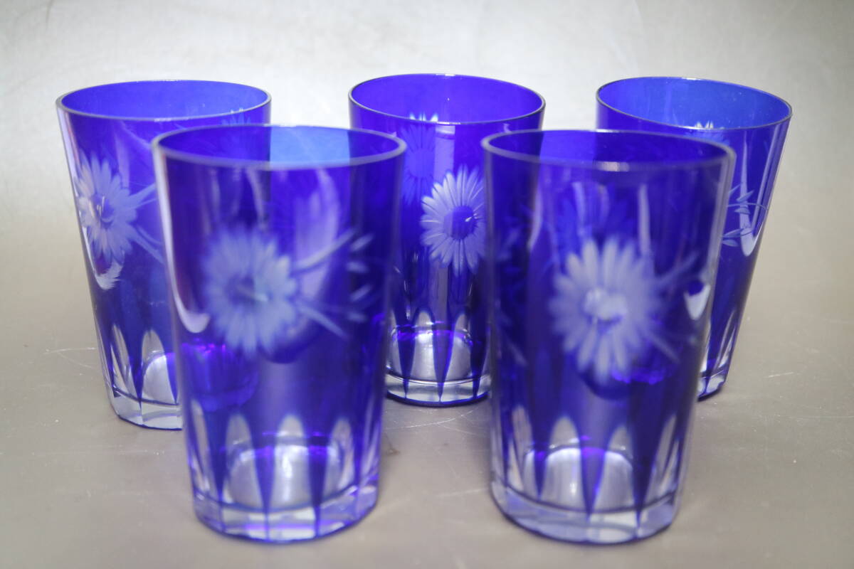 - 色被せ 切子 一口 ビアグラス 青 5客セット
