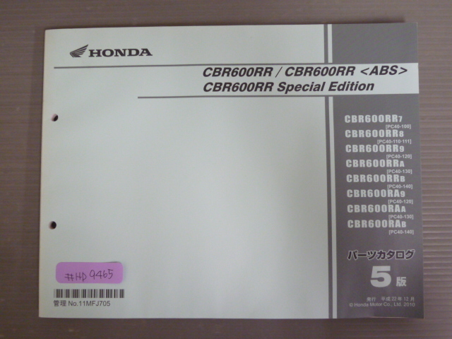 > CBR600RR ABS Special Edition スペシャルエディション PC40 5版 ホンダ パーツリスト パーツカタログ 送料無料