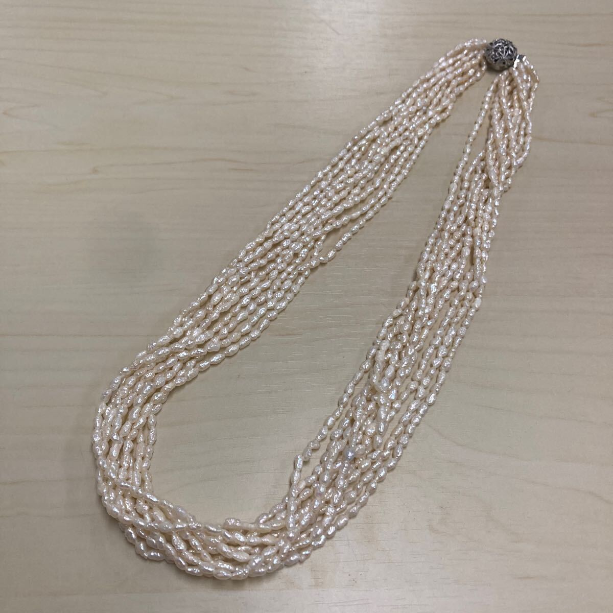 - 本真珠ネックレス 10連パールネックレス 57cm 65g SILVER ロングパールネックレス
