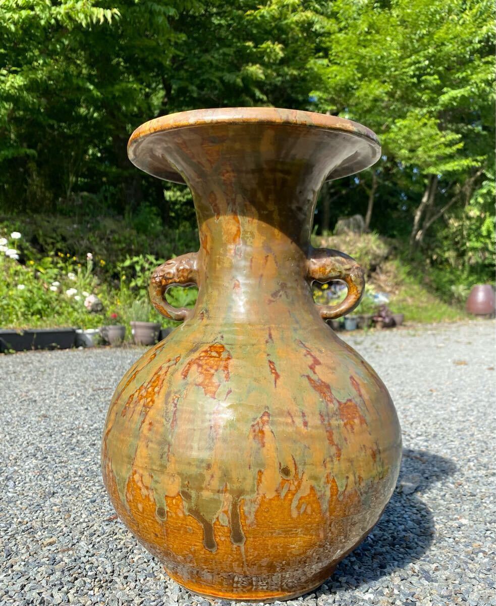 - 民芸復興『用の美 小鹿田焼 大きい花入(高さ42cm) 「小鹿田焼」「鹿峰」在名』民芸運動 バーナードリーチ 時代物 古美術 骨董 花器 花瓶