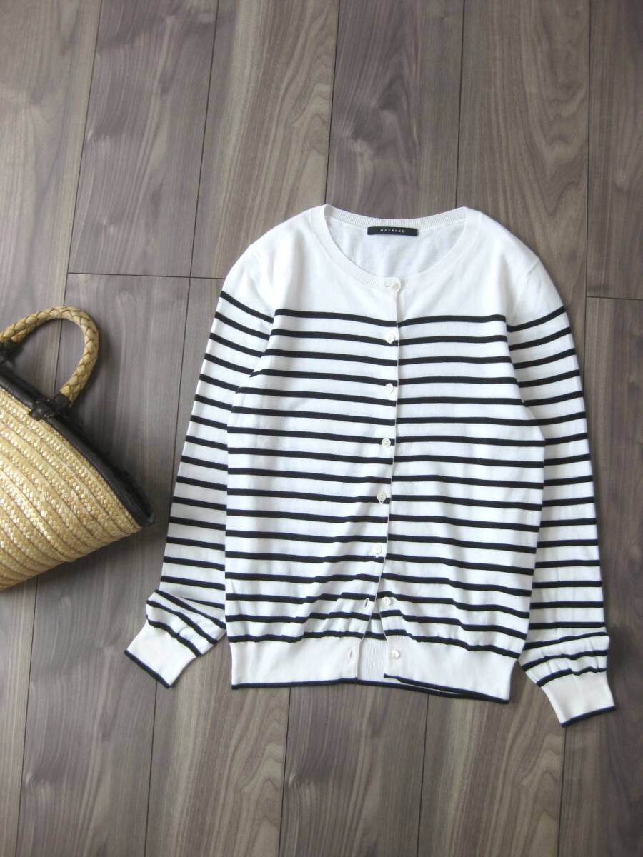 > ☆トゥモローランドMACPHEE☆カーディガン☆長袖☆ボーダー柄☆S(7号)☆コットン☆クルーネック☆WHITE×BLACK☆マカフィー