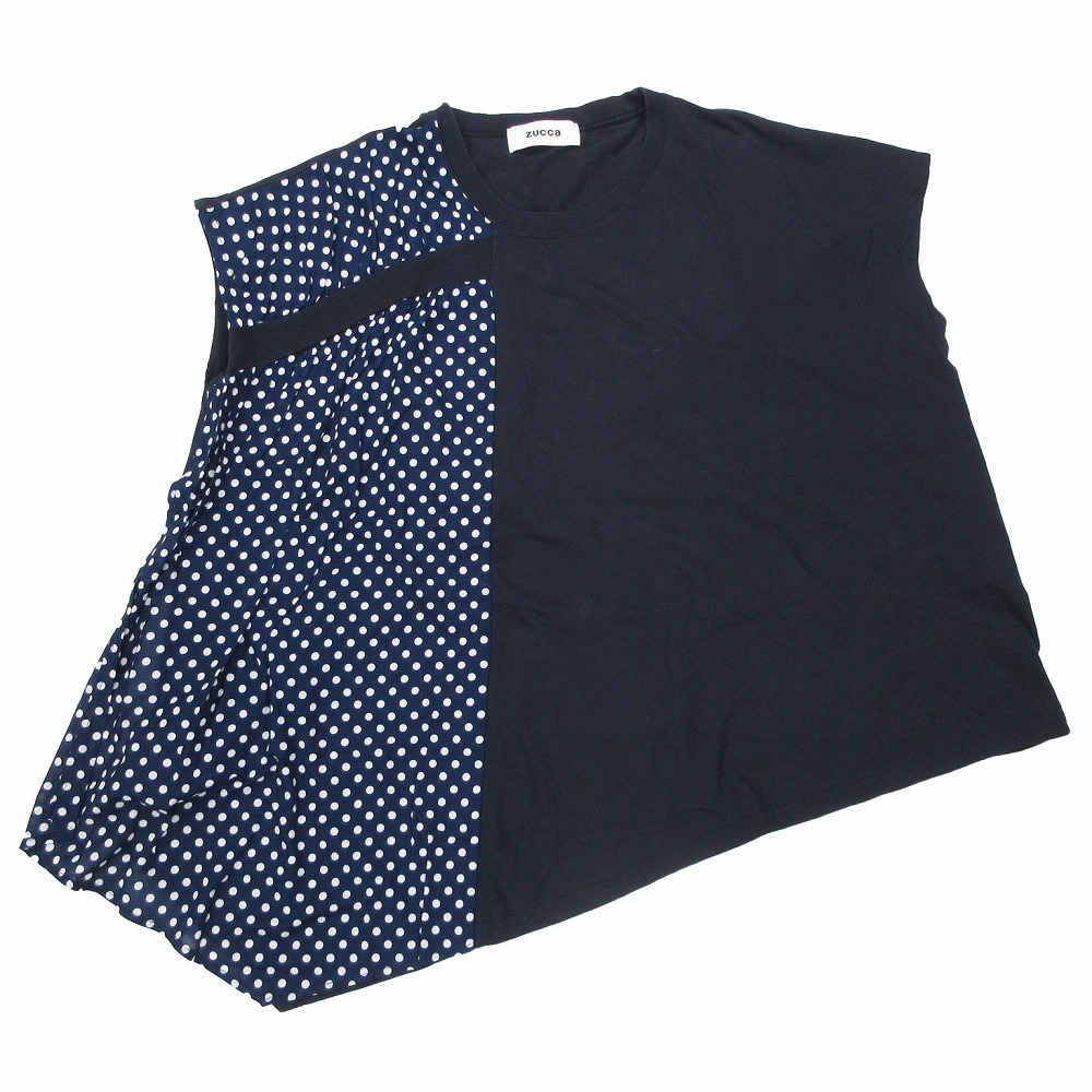> zucca ズッカ ドッキング 変形 Tシャツ カットソー チュニック プルオーバー トップス M ネイビー レディース 【中古】