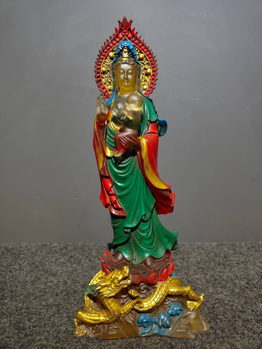 - 蔵友旧蔵出 琉璃製 細密彫 騎龍送子觀音菩薩像 希少珍品 貴重品 置物 古賞物 中国古玩 中国古美術品