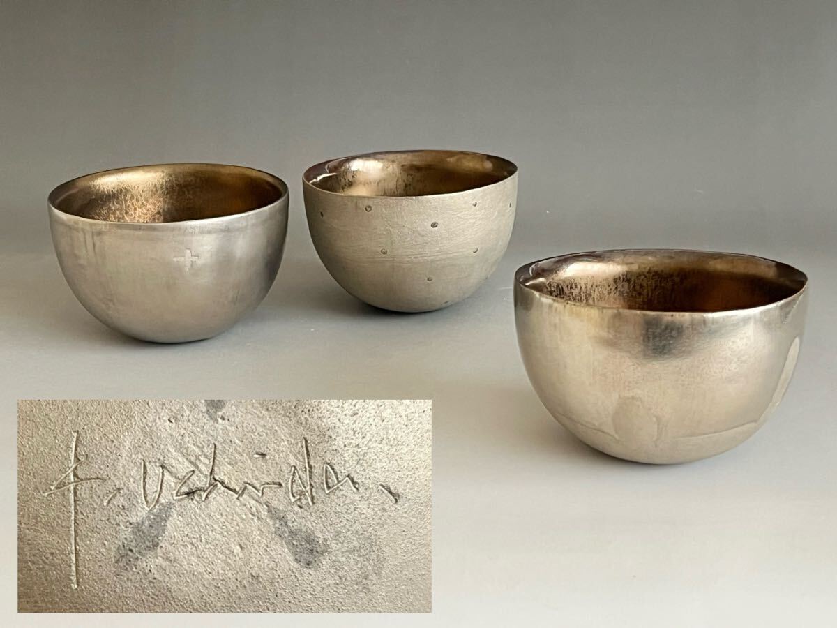 - ★ 内田鋼一 白金彩 プラチナ釉 碗 三客セット カップ ぐい呑