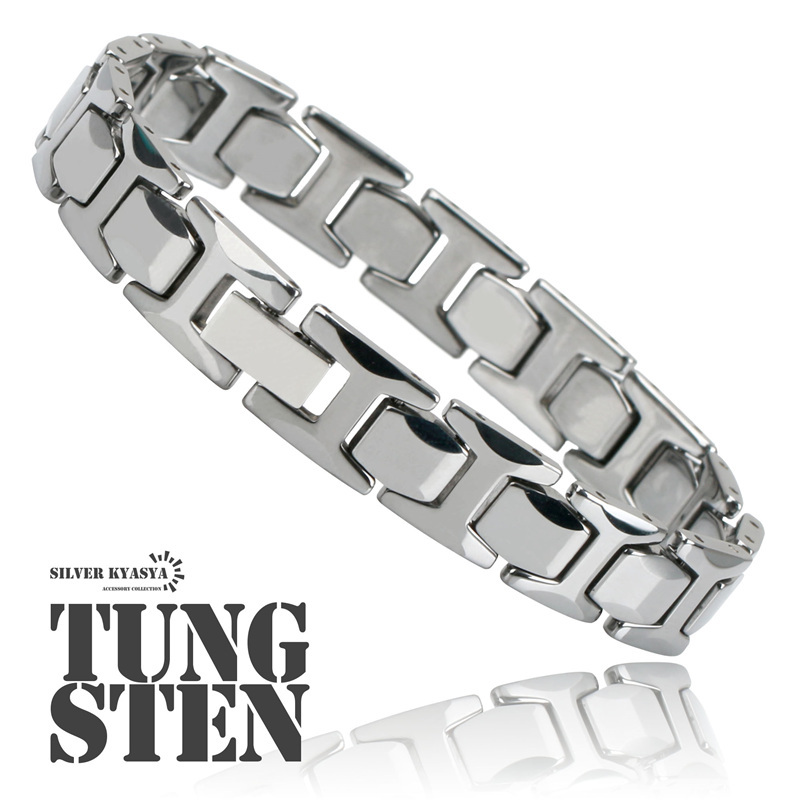 - タングステン メタルバンド ブレスレット メタルブレスレット 中折式 高耐久 頑丈 金属アレルギー ボックス付属 調整器具