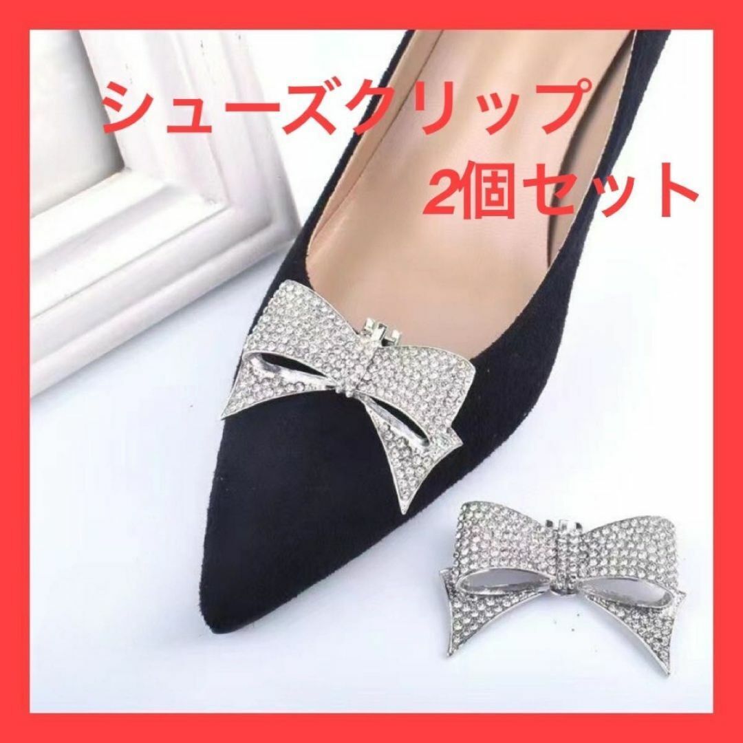 - 【2個セット】リボン型シューズクリップ 入学式 卒業式 結婚式 ヒール パンプス