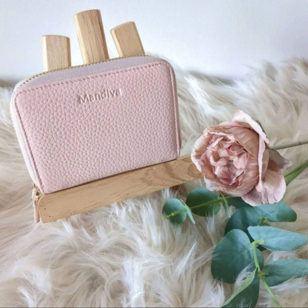 - 本革 二つ折り 財布 コンパクト ラウンドファスナー スキミング防止 レディース ミニ財布 カード たくさん 入る ピンク ウォレット