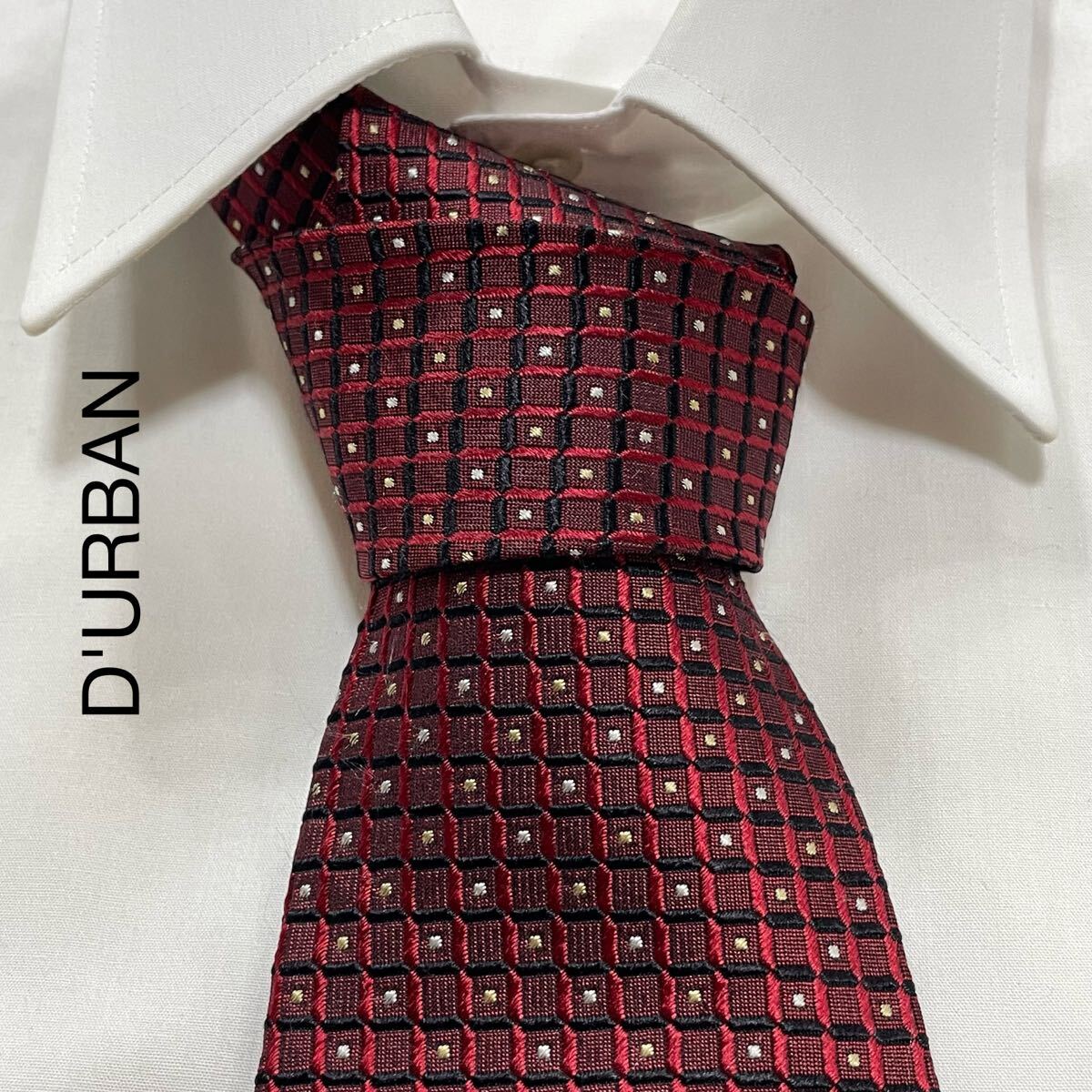 - D'URBAN ダーバン 格子 ドット ジャガード シルク ネクタイ 日本製 ワイン ブラック ベージュ TG1619