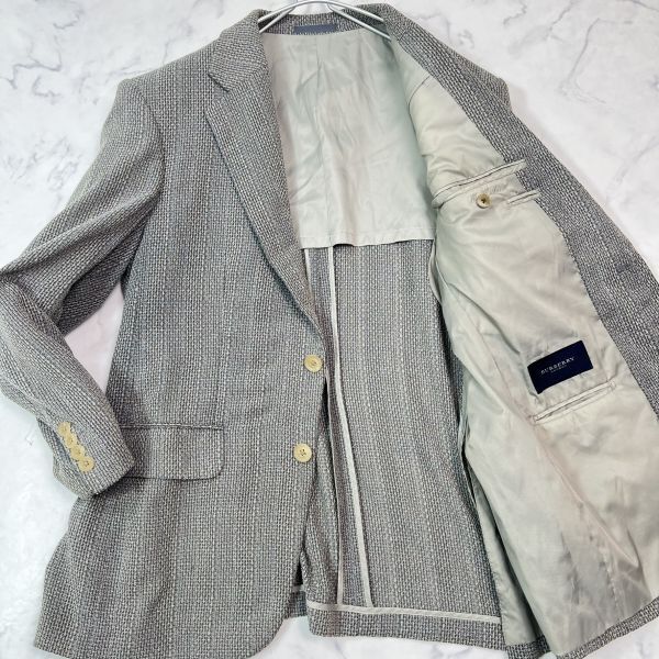 > バーバリーロンドン シルク混 テーラードジャケット 背抜き パイピング 春夏 メンズ L~XL相当 グレー系 BURBERRY LONDON B0969