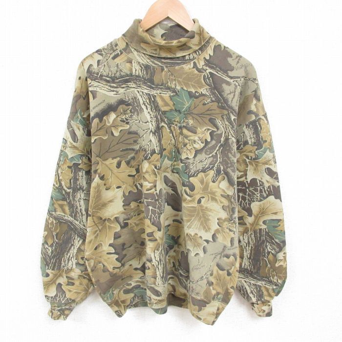 - XL/古着 ジャージーズ 長袖 スウェット メンズ 00s タートルネック ハイネック こげ茶 ブラウン 迷彩 25jun03 中古 スエット トレーナー ト