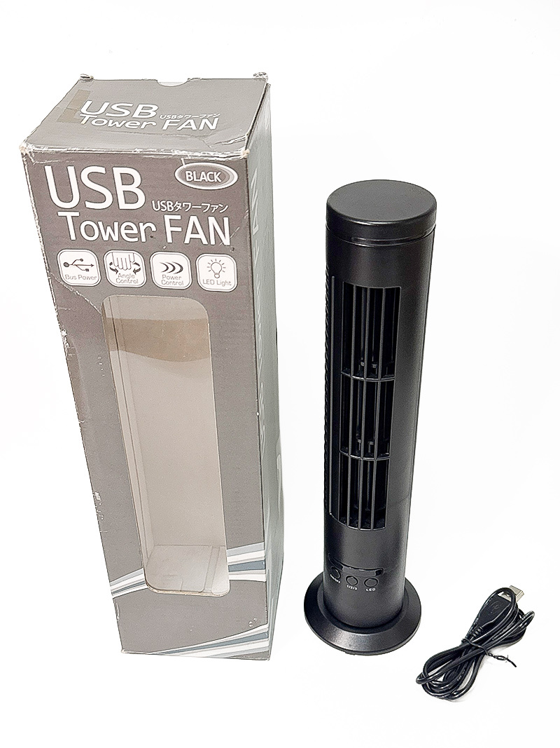 - USB2.0 タワーファン 3段階強弱調整 バスパワー LEDライト 手動左右調整 デスク用 小型 卓上 動作品
