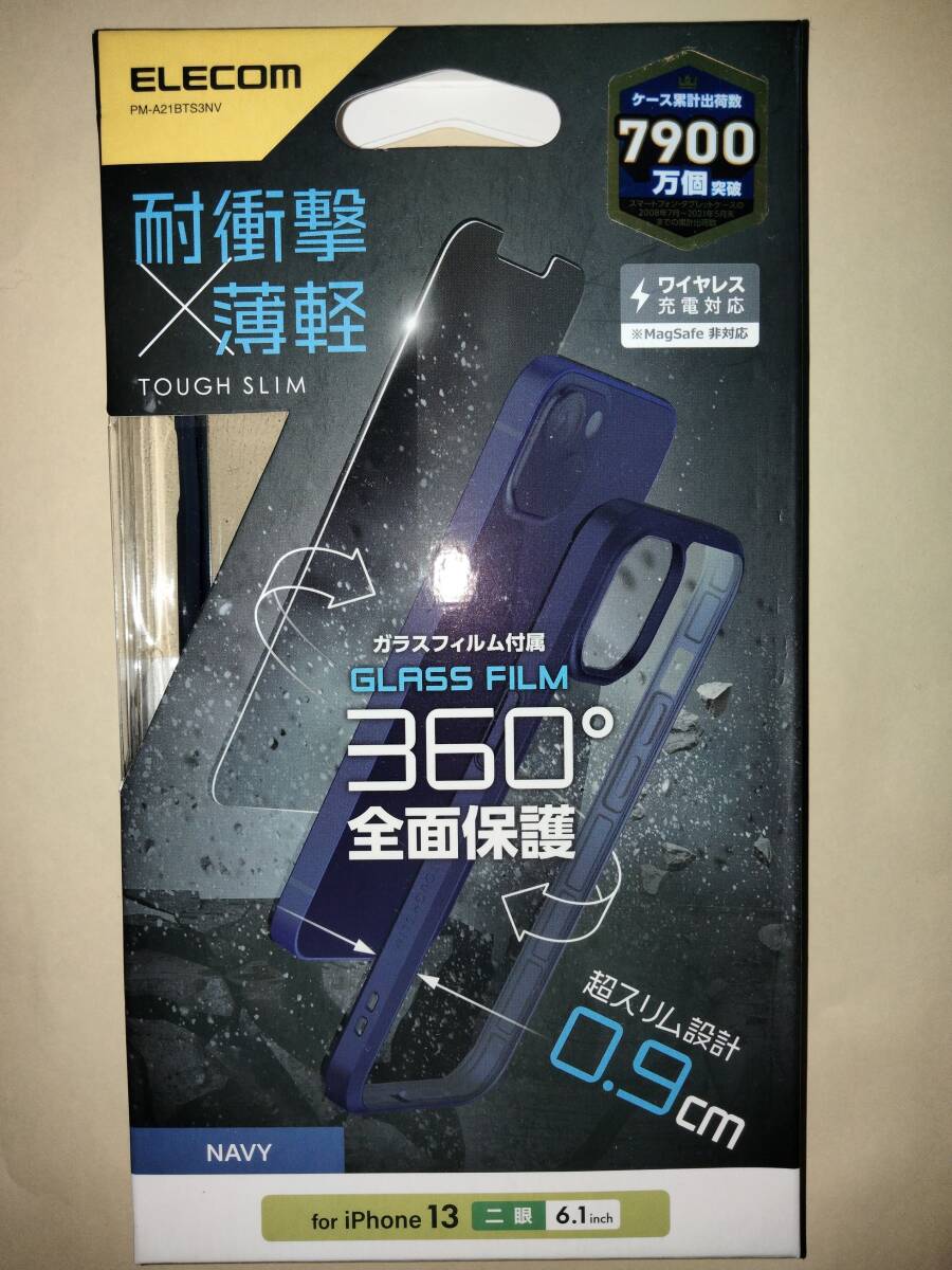 - ELECOM iPhone 13 iPhone 14 TOUGH SLIM 360度保護 ネイビーフレーム専用液晶ガラスフィルム端末360度全面保護 強じん耐久性しなやか弾力性