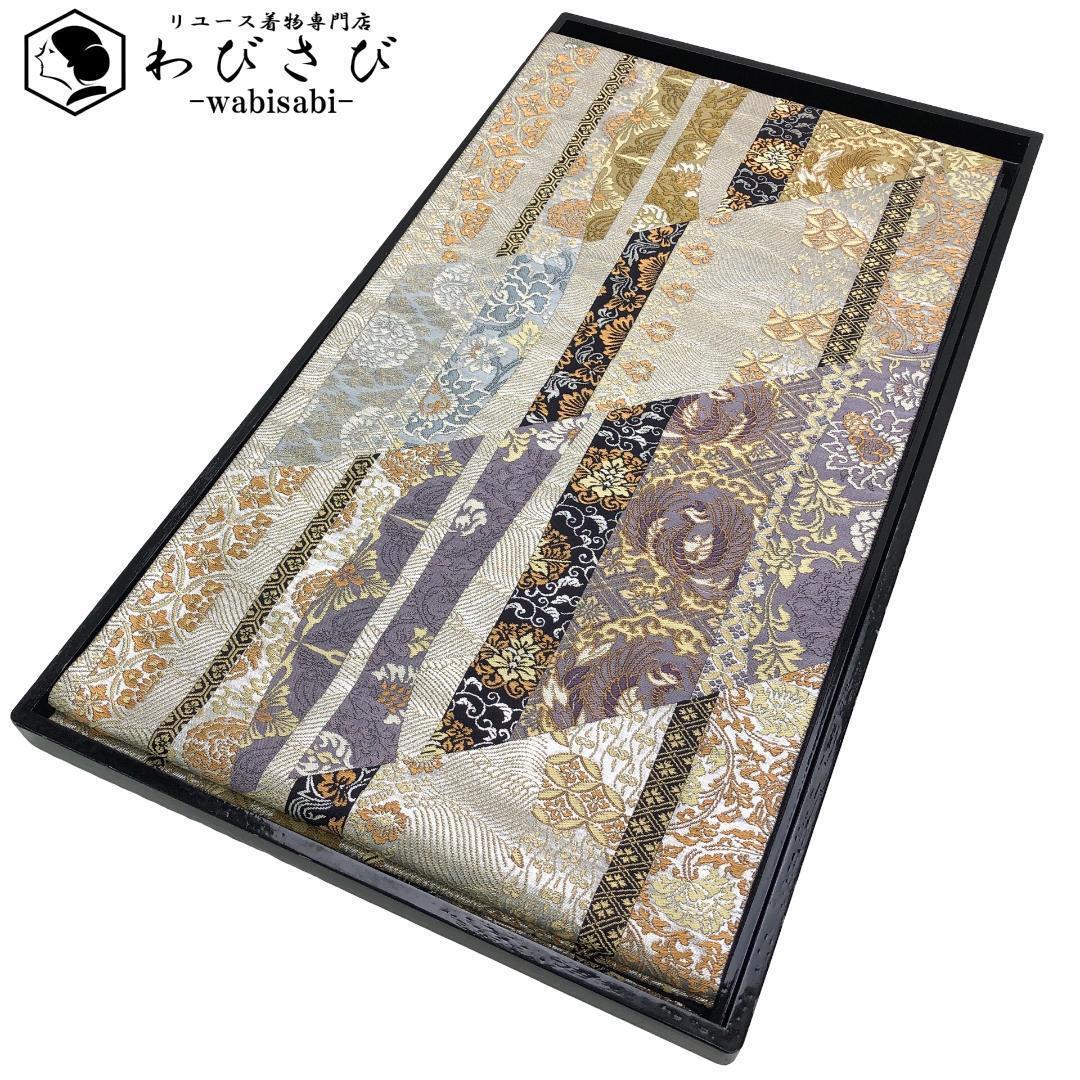 > 袋帯 宮廷の有職文様 鳳凰に美しい華柄模様 ガード加工 銀色 O-5164