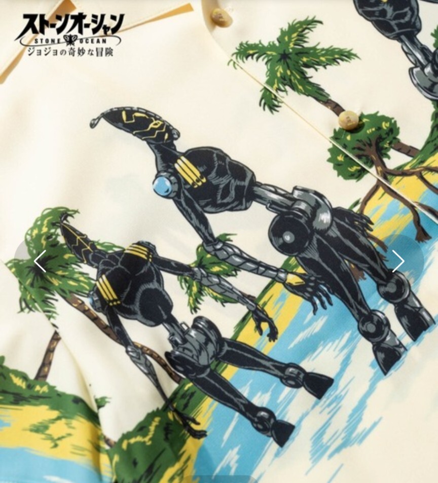 > glamb ジョジョ フーファイターズ シャツ jojo F・Fシャツ ベージュ ストーンオーシャン 検索 空条徐倫 アロハ ボーリングシャツ