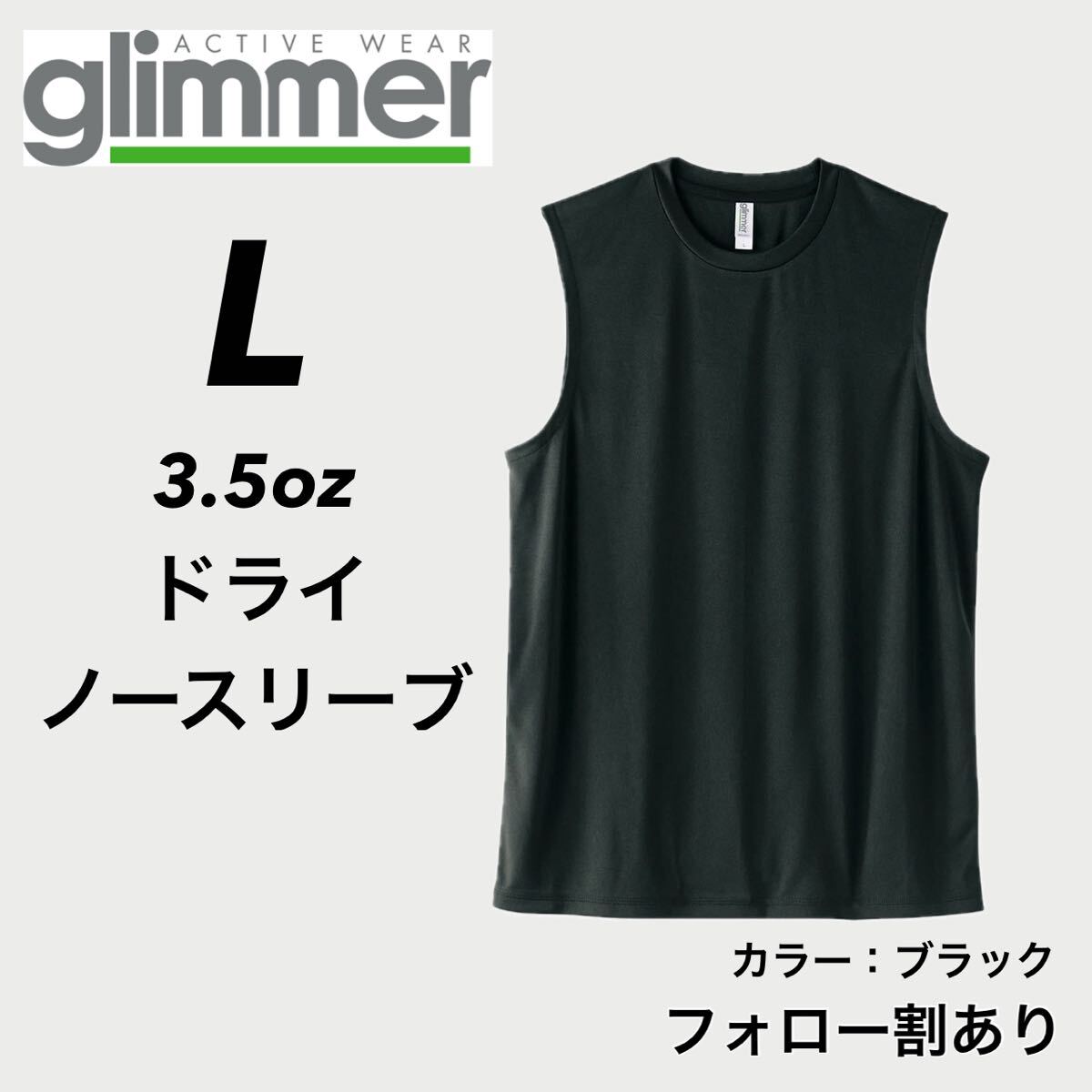 - glimmer グリマー 新品未使用 3.5oz ドライノースリーブ 吸水速乾 UVカット スポーツ ダンス インナー 黒 ブラック Lサイズ