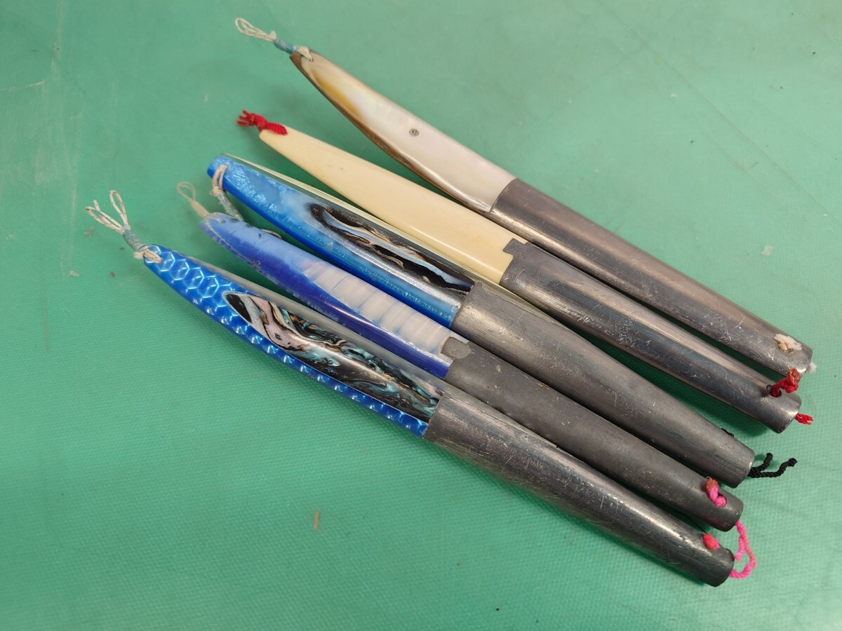> ● 3) マス シャクリ しゃくり棒 カラフル キラキラ 198~216mm/171g~235g 5点セット ブルーシルバー ホワイト パール カラー 中古 ③