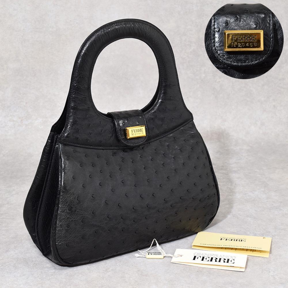 > special vintage 80s Gianfranco Ferre ジャンフランコフェレ ダチョウ革 オーストリッチ エキゾチックレザー ワンハンドル バッグ 黒