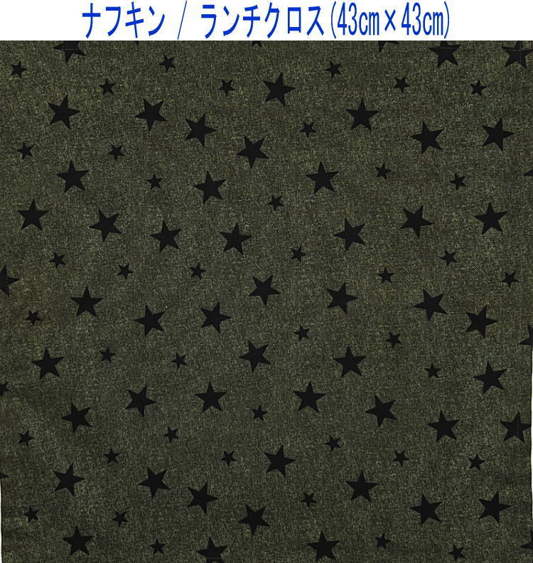 > ナフキン・ランチクロス(43cm×43cm)正方形【デニム調 スター柄 デニムグリーン】ランチマット ランチョンマット 日本製 星 シンプル