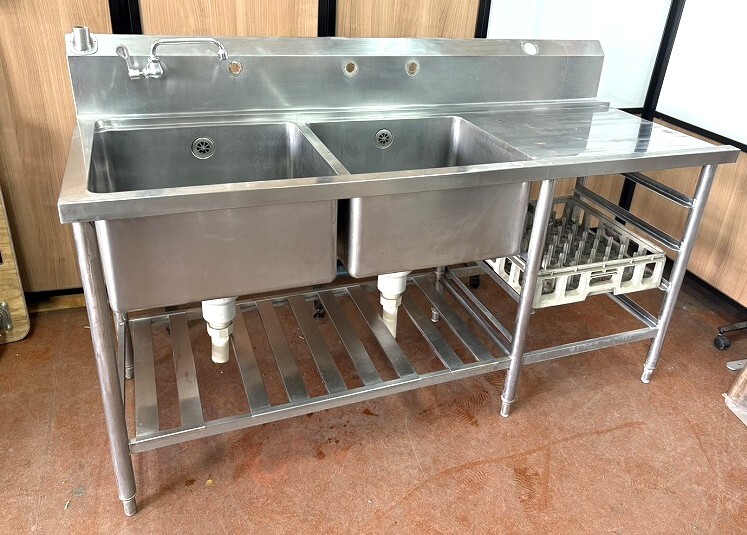 > 福岡発 大型 ソイルドシンク ステンレス 2槽 W171 D65 H80(+20)cm 蛇口付 食器洗浄機 用