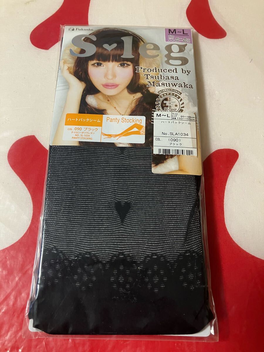 - fukuske s-leg ハートバックシーム ブラック パンティストッキング 柄 デザイン 黒 panty stocking 福助