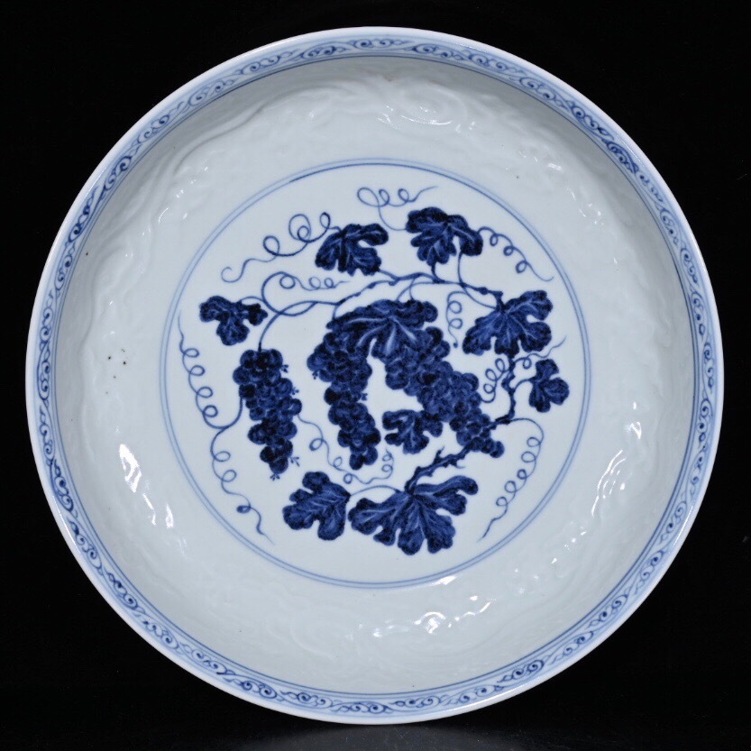 - 蔵友旧蔵出 元 青花 葡萄紋 龍紋 供盤 稀少珍品 貴重品 古陶瓷品 置物 古賞物 中国古玩 中国古美術品