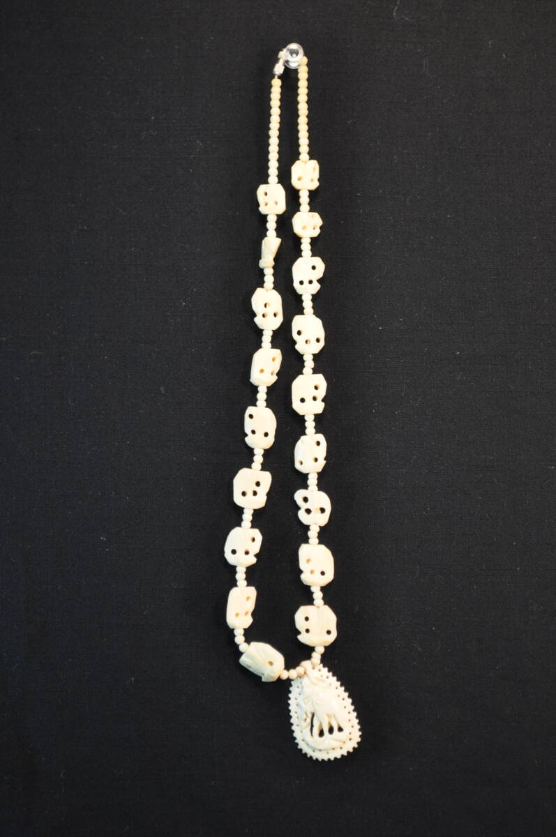 - 11 骨 彫刻 ペンダント 長さ50cm