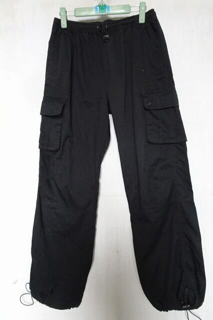 - カーゴパンツ/ウエストゴム/ウエスト・裾ドローコード入/綾織り素材/黒/ブラック/LLサイズ(6/10R7)