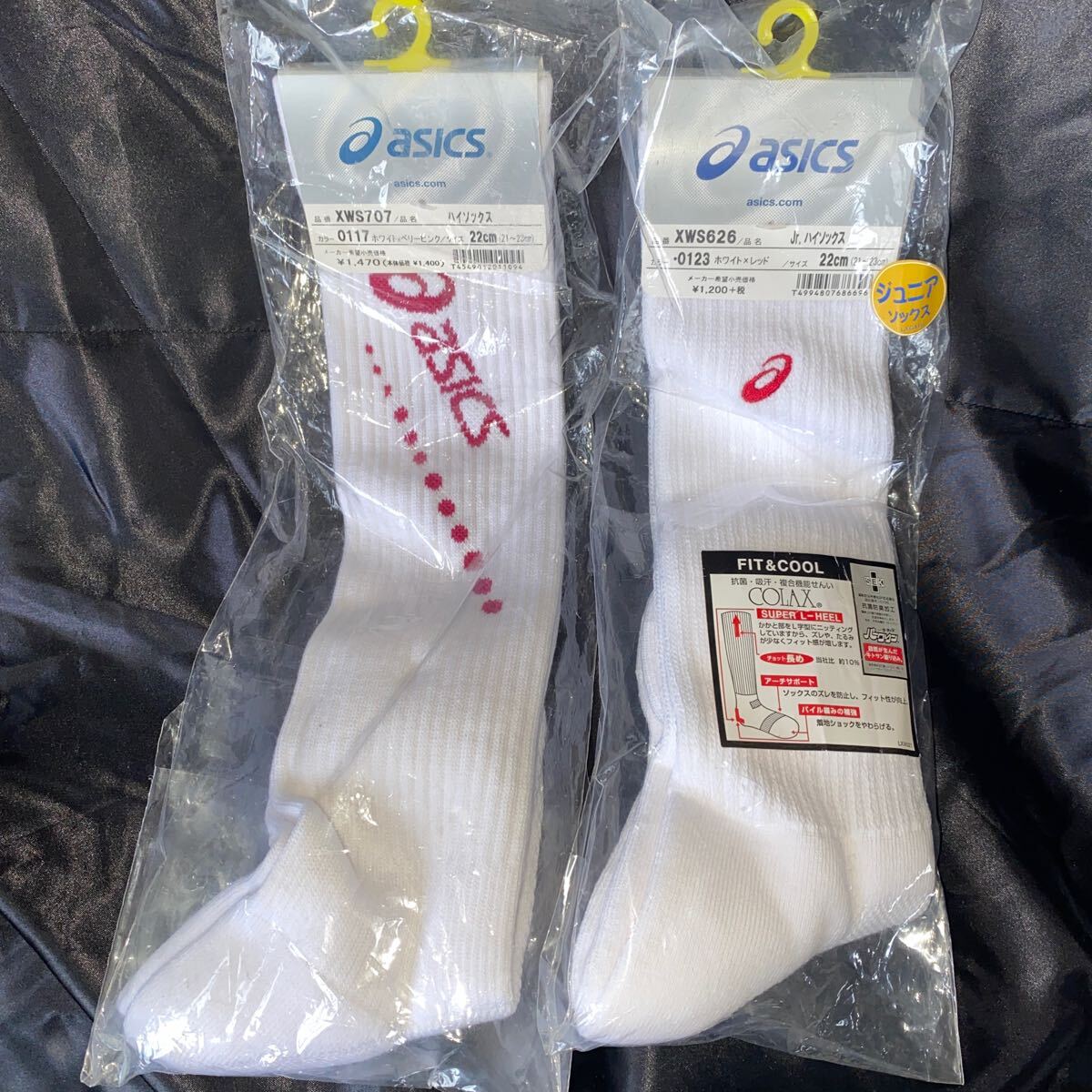 - XwS561【新品未使用】asics ジュニアハイソックス *サイズ22cm ホワイト スポーツ 運動 ソックス 靴下 種類別 2点セット