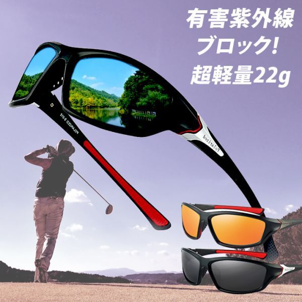 - スポーツサングラス偏光レンズメンズ超軽量22gUV400紫外線をカット/ 自転車,釣り,テニス/ランニング/ドライブ TR90