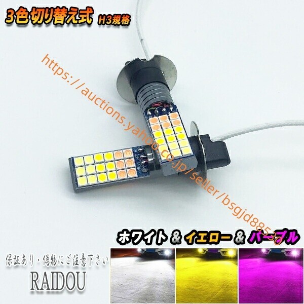 > インプレッサ H15.9-H17.5 フォグランプ H3 LED 3色切替 ホワイト イエロー パープル 166led-3iro-w-y-p-h3-knt