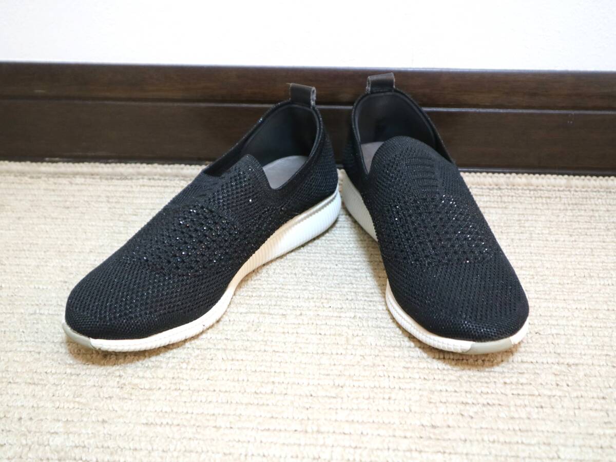 - 【即決】1回使用 極美品 日本製 A&C ◆定形外 軽量 ビジュー ストレッチ フラット シューズ スリッポン ブラック 23EEE