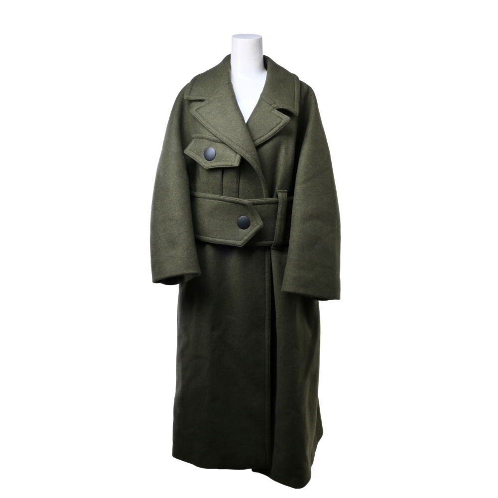 - 美品 MARNI ベルト付き ウール混 ラップコート 38 カーキ マルニ KL4BSAPA79
