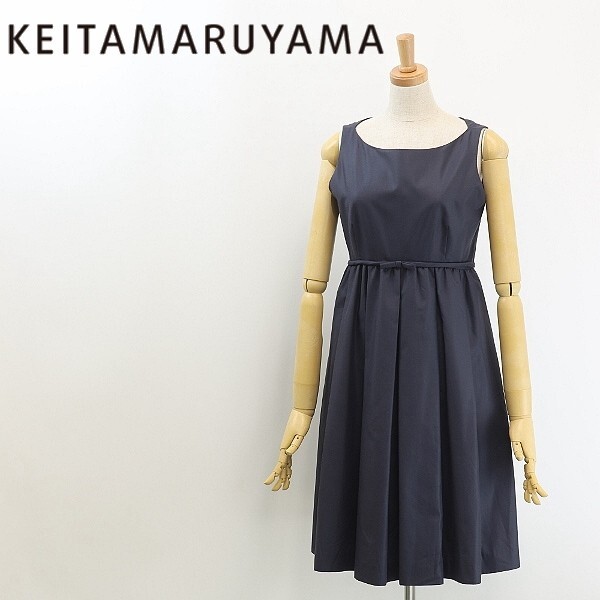 - ◆KEITA MARUYAMA ケイタ マルヤマ リボン タック フレア ノースリーブ ワンピース 紺 ネイビー 0