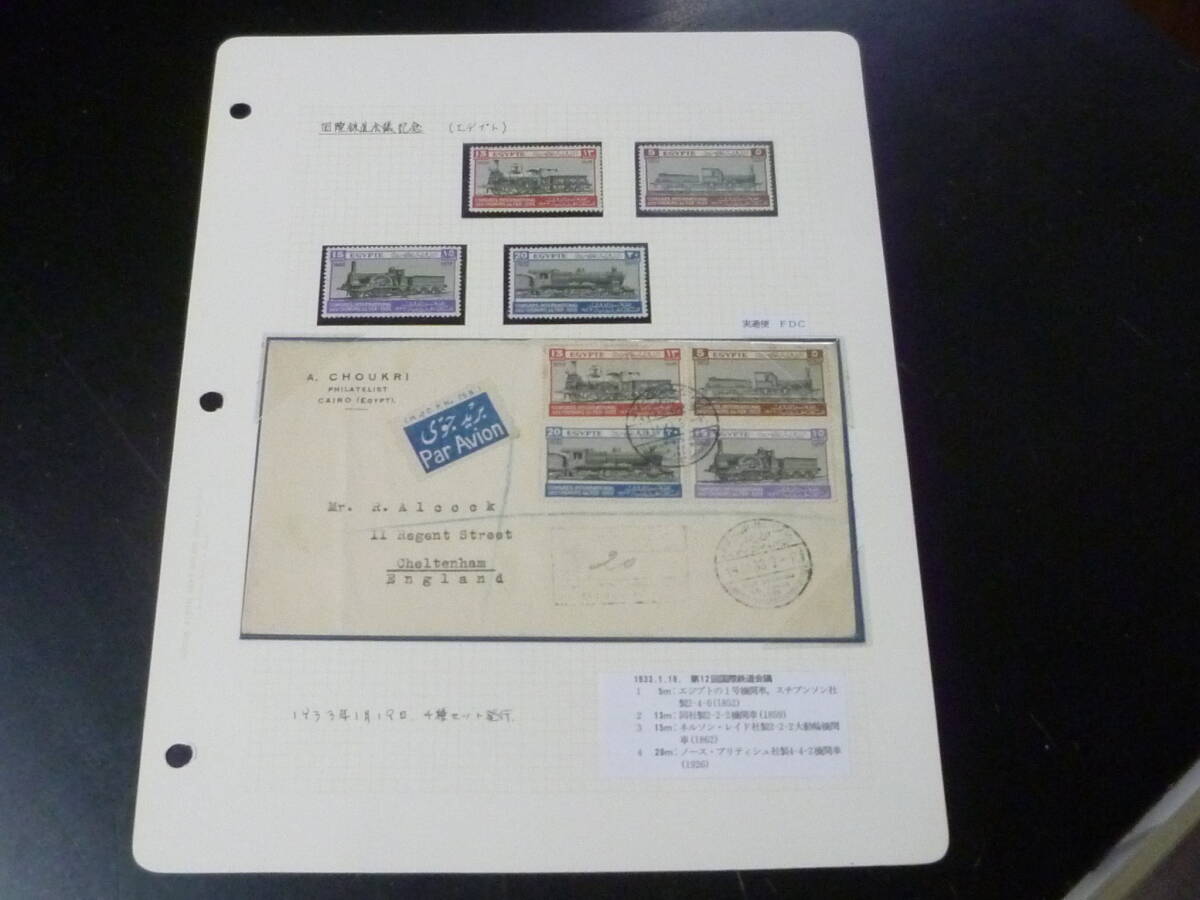 - 鉄道切手№1 エジプト 1933年 SC#168-171 12回国際鉄道会議 4種完+カバー 未使用NH・VF ※説明欄必読