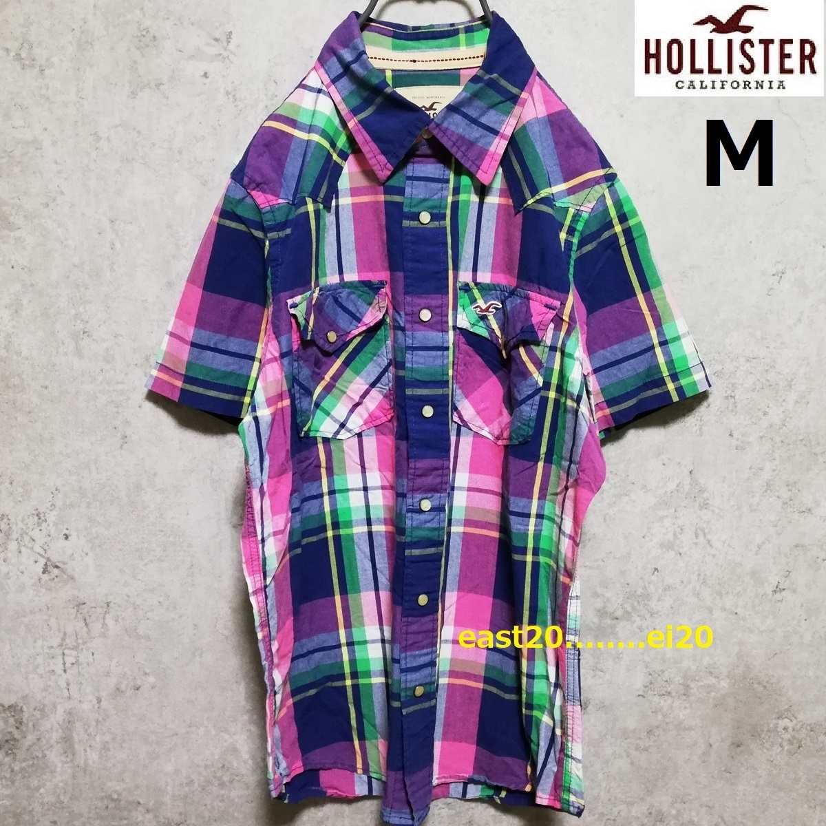 > HOLLISTER ホリスター 1922 カリフォルニア マルチカラー チェック 柄 半袖 スナップボタン シャツ M アメカジ アバクロ Y2K 即決 送料無料