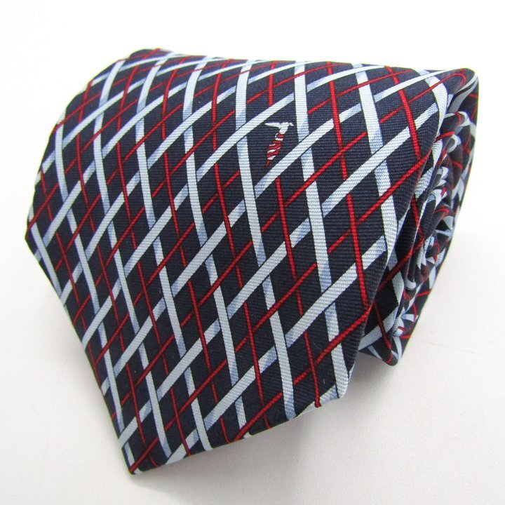 > トラサルディ ブランド ネクタイ ロゴ チェック柄 ダイヤ柄 格子柄 シルク イタリア製 PO メンズ ネイビー TRUSSARDI