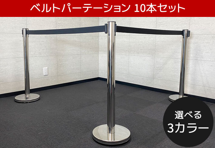 > 【5本セット】ベルトパーテーション 軽量 黒 ブラック レッド ブルー 3m 仕切り ベルト スタンド カーショー イベント 高め 展示 ①