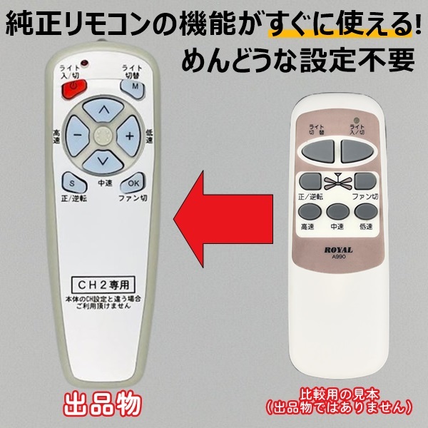 - 【代替リモコン207】ROYAL A990 (CH2) 互換 送料無料 シーリングファン ロイヤル ローヤル 照明