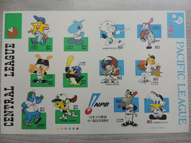 > ★日本プロ野球セ・パ誕生50周年・シール式★ 1999年 80円切手×12枚 960円分 新品・未使用
