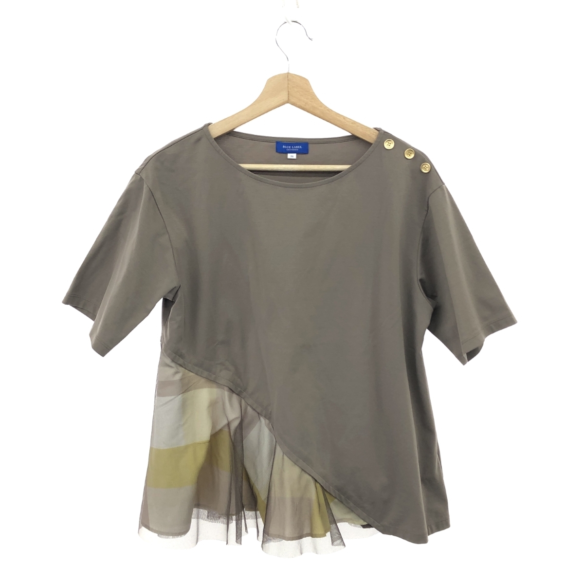 > ◆BLUE LABEL CRESTBRIDGE ブルーレーベルクレストブリッジ アシンメトリーカットソー ブラウス サイズ38◆ ブラウン レディース チュール