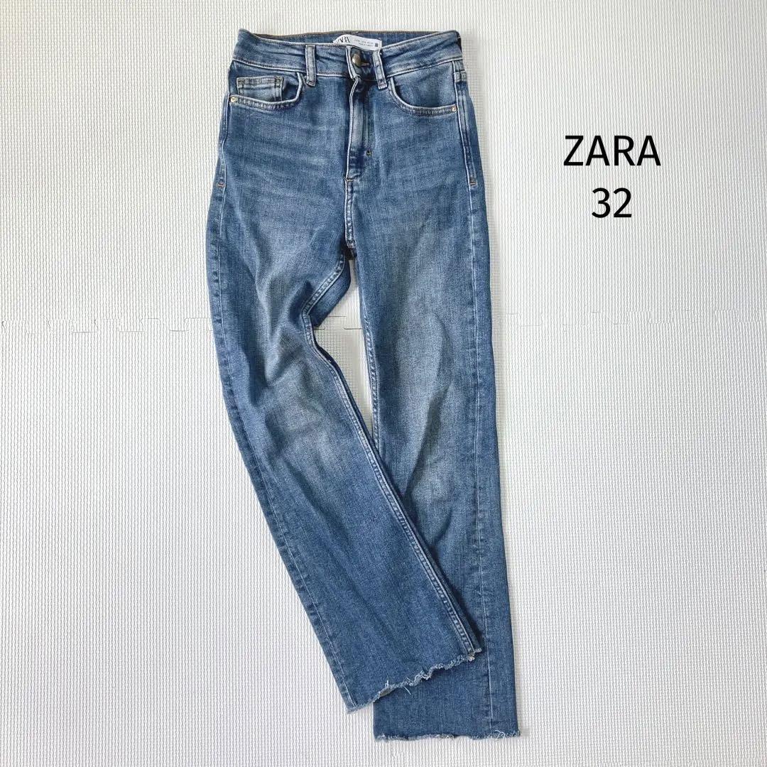 - ザラ ZARA スキニーデニム サイズ32 ブルー 切りっぱなし 裾フレア