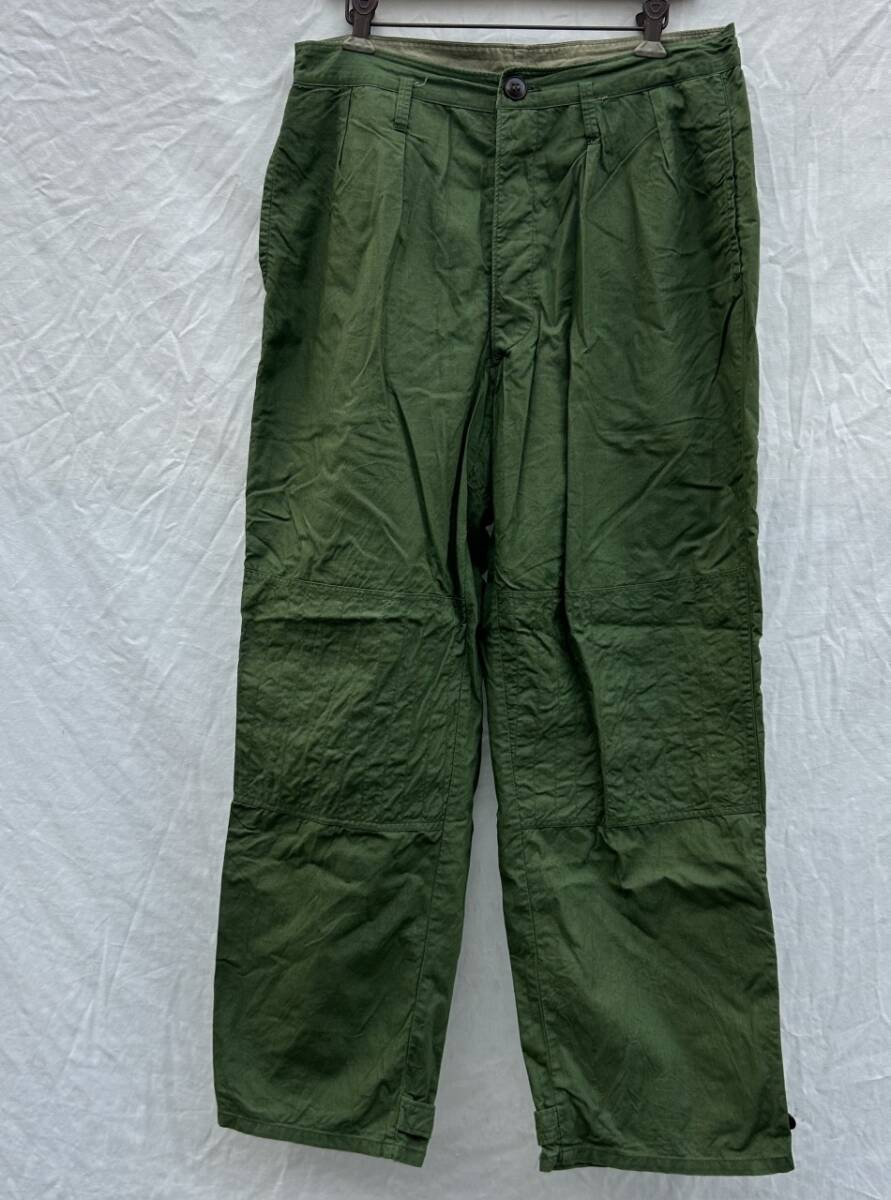 - 70s 中国 人民解放軍 ぐるぐるステッチ モンキーパッチ ボタンフライ パンツ ニーパッチ 綺麗なオリーブ色 ヴィンテージ