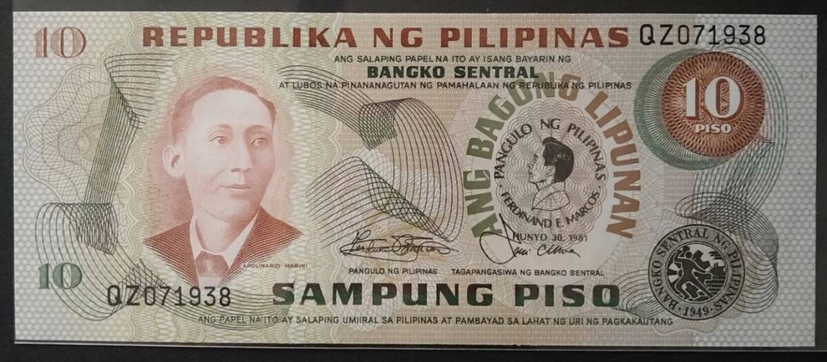 - フィリピン・10ペソ紙幣(1枚)【中古】